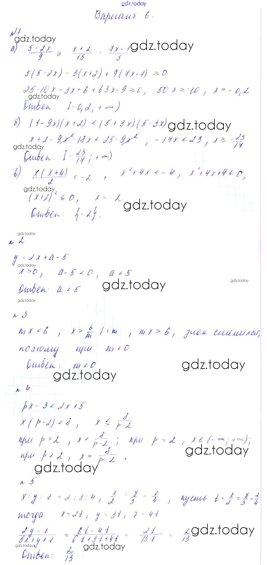 Ответы к СР №3. Решение неравенств. Числовые промежутки Решение к самостоятельным работам Вариант-6 Дидактическим материалам по Алгебре для 8 класса Зив, Гольдич Виктория плюс 2012