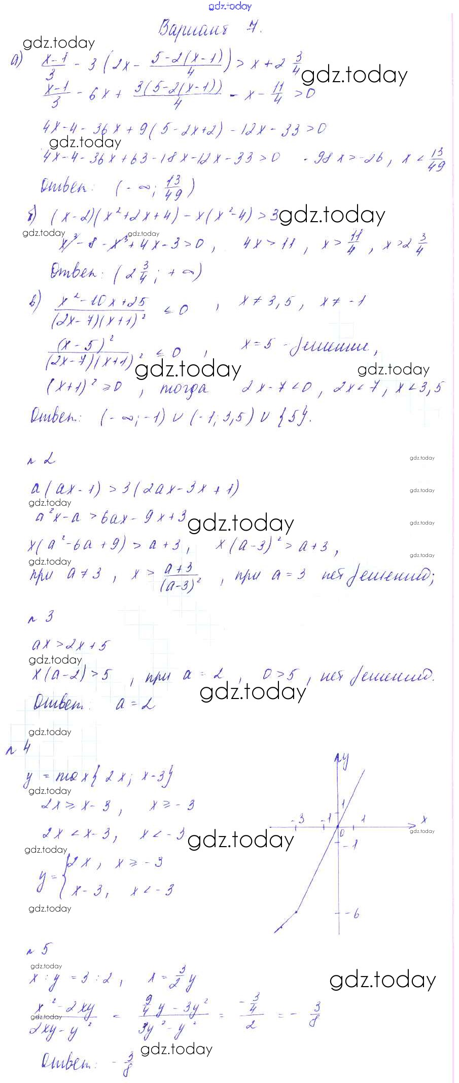 Ответы к СР №3. Решение неравенств. Числовые промежутки Решение к самостоятельным работам Вариант-7 Дидактическим материалам по Алгебре для 8 класса Зив, Гольдич Виктория плюс 2012