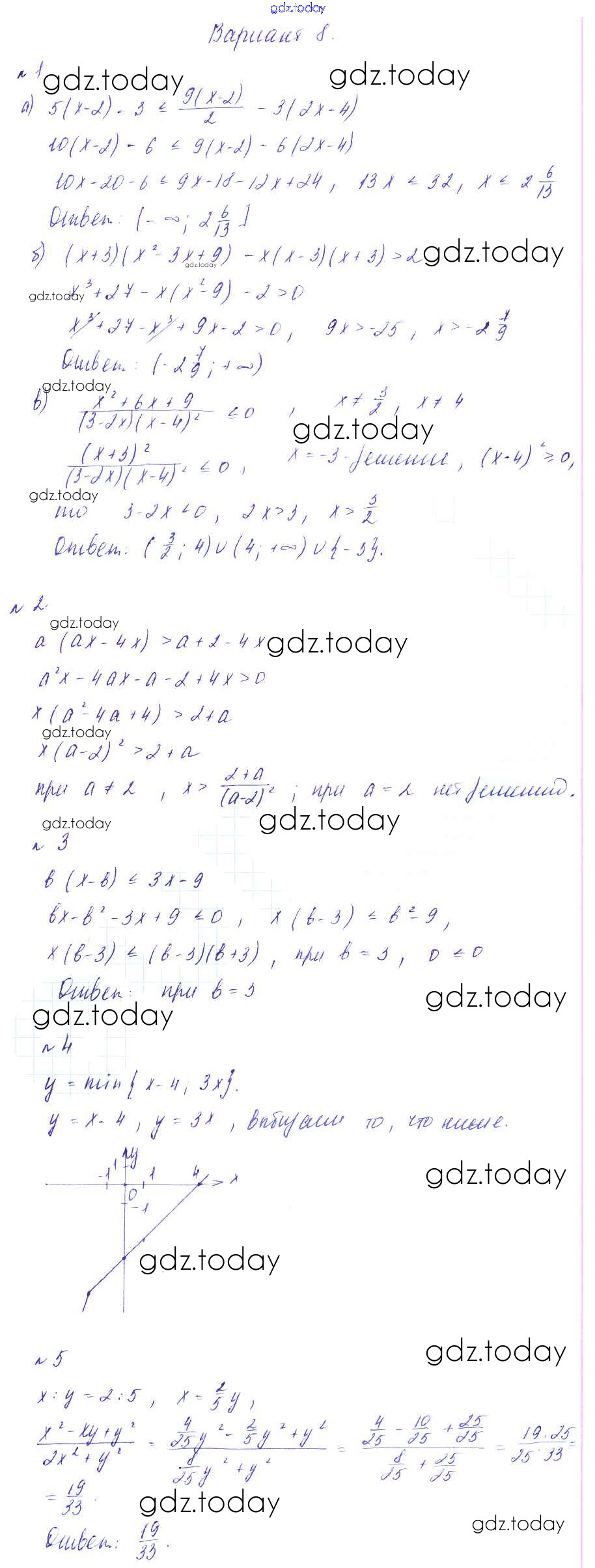 Ответы к СР №3. Решение неравенств. Числовые промежутки Решение к самостоятельным работам Вариант-8 Дидактическим материалам по Алгебре для 8 класса Зив, Гольдич Виктория плюс 2012