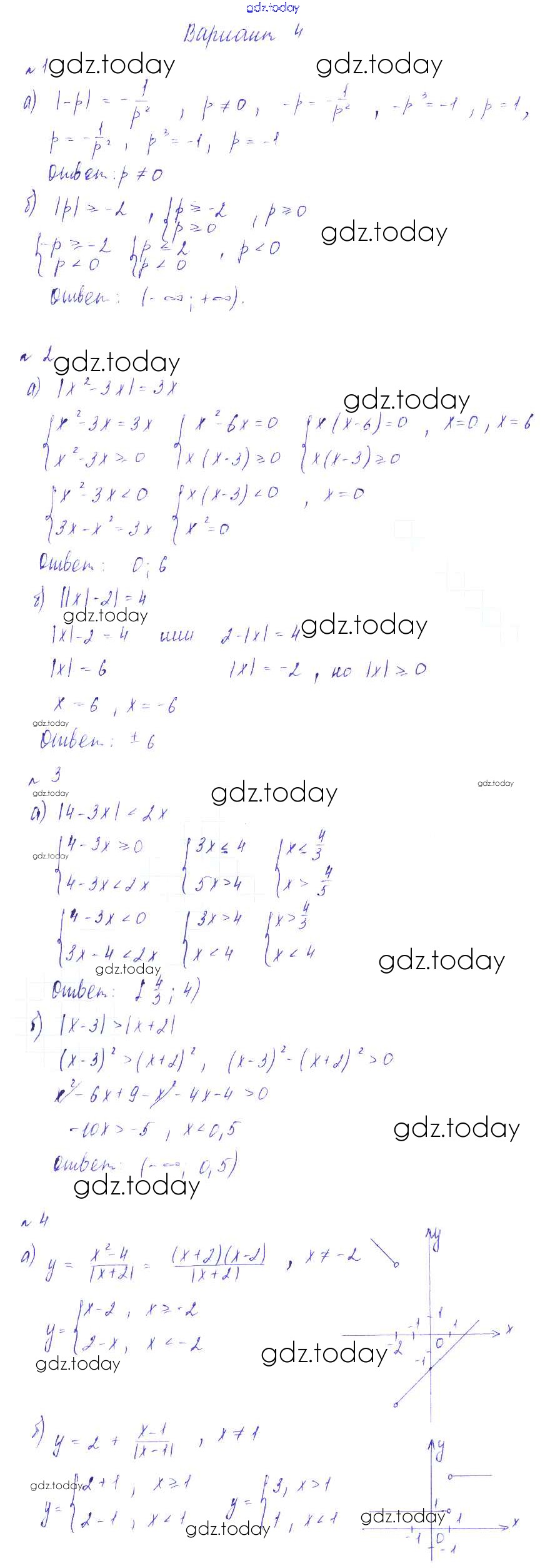 На страницах сайта gdz.today вы найдете учебный и вспомогательный материал, направленный на улучшения знаний школьной программы. ГДЗ - онлайн мир знаний СР №5.Модуль числа. Уравнения и неравенства, содержащие модуль Решение к самостоятельным работам Вариант-4 Дидактическим материалам по Алгебре для 8 класса Зив, Гольдич Виктория плюс 2012