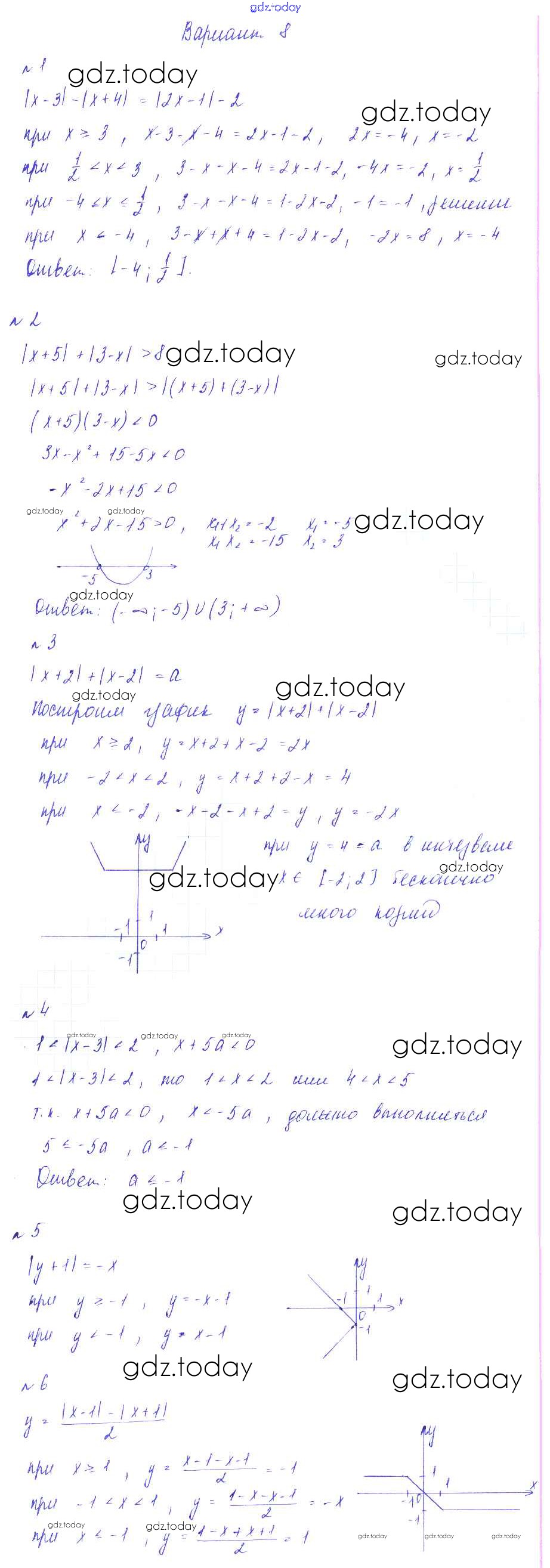 На страницах сайта gdz.today вы найдете учебный и вспомогательный материал, направленный на улучшения знаний школьной программы. ГДЗ - онлайн мир знаний СР №5.Модуль числа. Уравнения и неравенства, содержащие модуль Решение к самостоятельным работам Вариант-8 Дидактическим материалам по Алгебре для 8 класса Зив, Гольдич Виктория плюс 2012