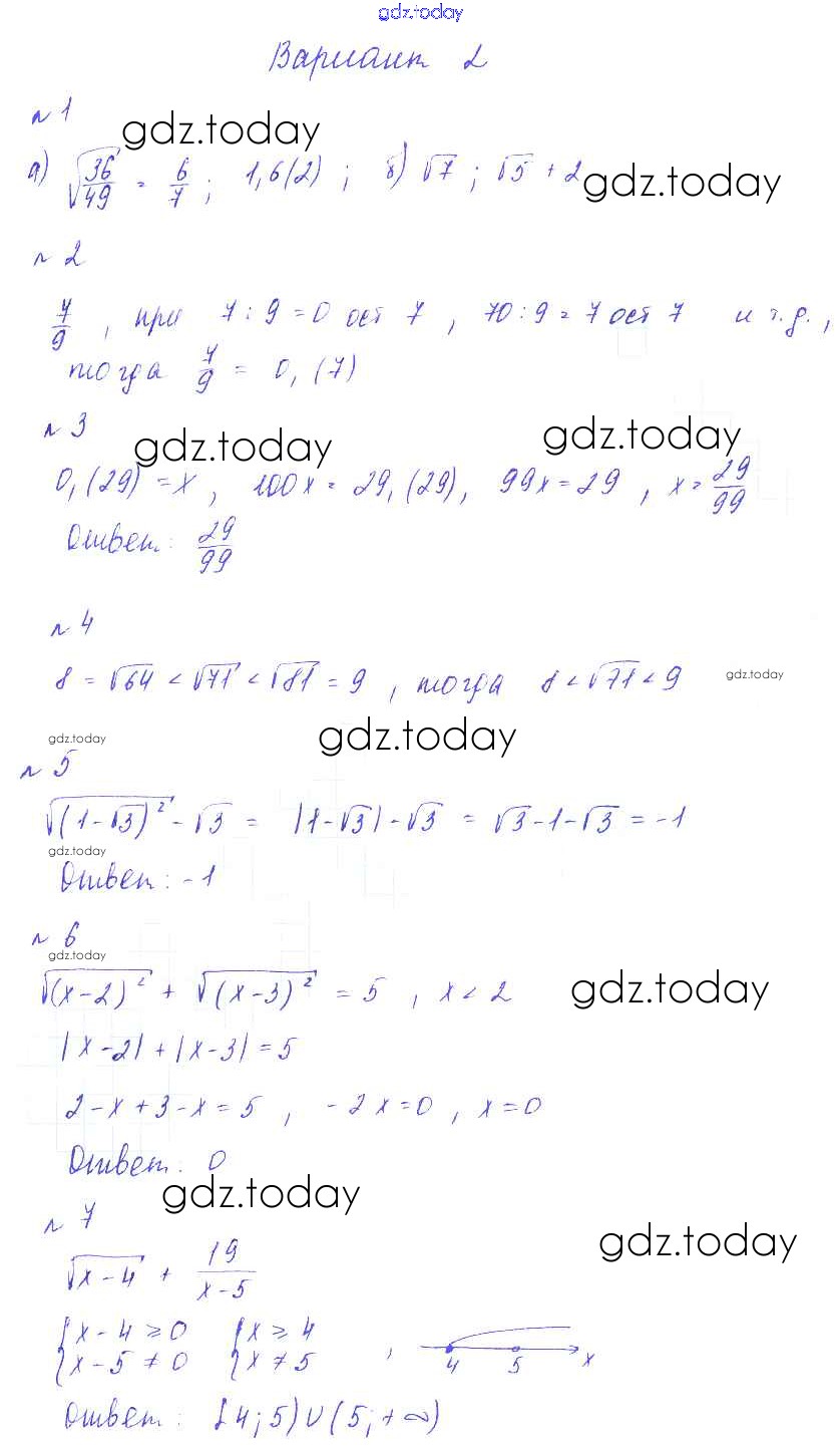 Ответы к СР №6. Действительные числа. Арифметический квадратный корень Решение к самостоятельным работам Вариант-2 Дидактическим материалам по Алгебре для 8 класса Зив, Гольдич Виктория плюс 2012