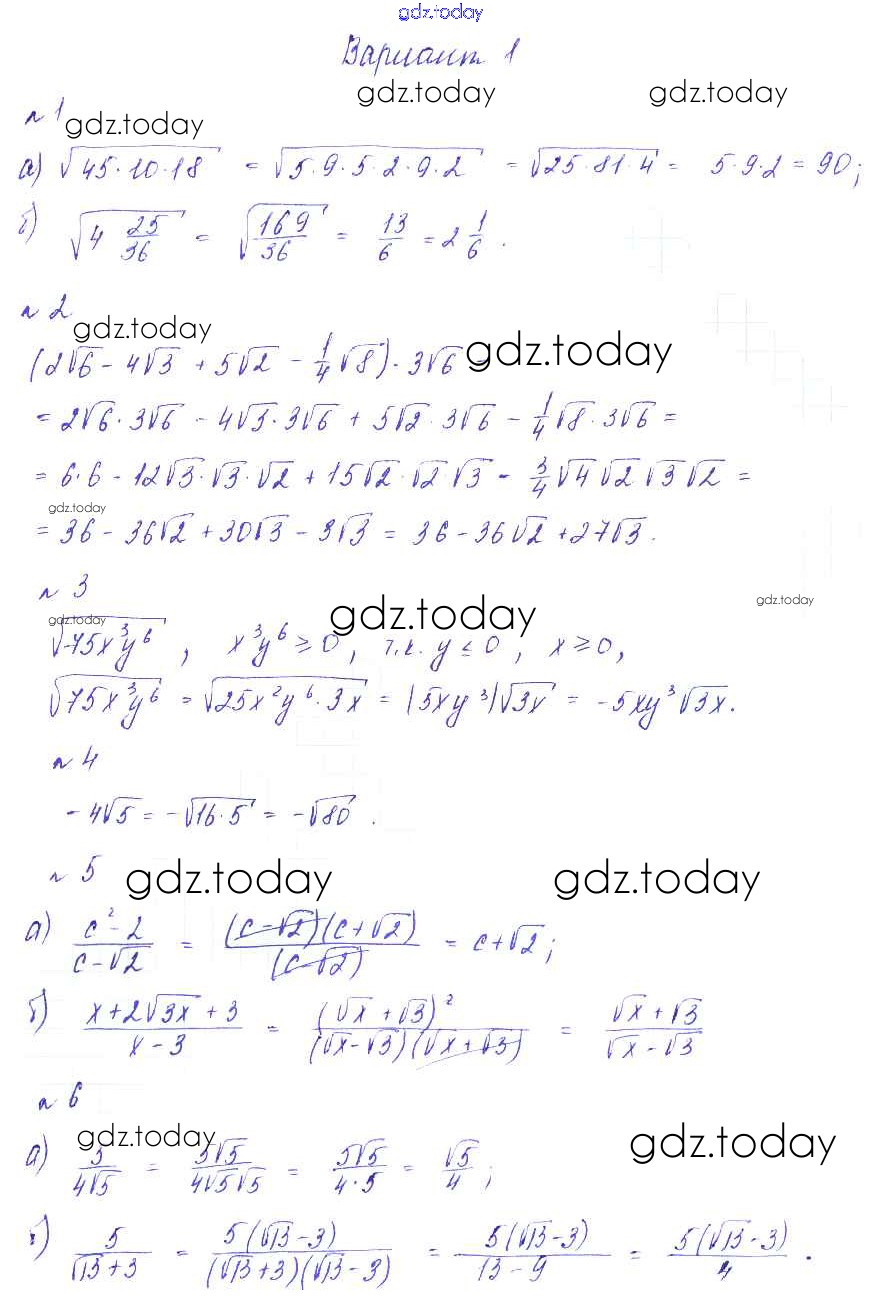 На страницах сайта gdz.today вы найдете учебный и вспомогательный материал, направленный на улучшения знаний школьной программы. ГДЗ - онлайн мир знаний СР №7. Квадратный корень из произведения и дроби Решение к самостоятельным работам Вариант-1 Дидактическим материалам по Алгебре для 8 класса Зив, Гольдич Виктория плюс 2012