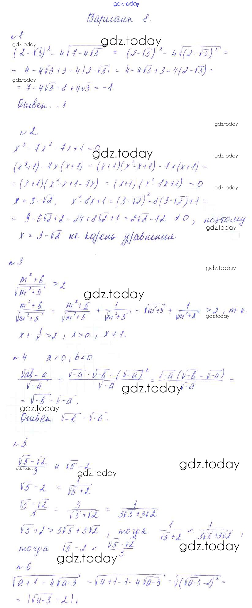 Ответы к СР №7. Квадратный корень из произведения и дроби Решение к самостоятельным работам Вариант-8 Дидактическим материалам по Алгебре для 8 класса Зив, Гольдич Виктория плюс 2012