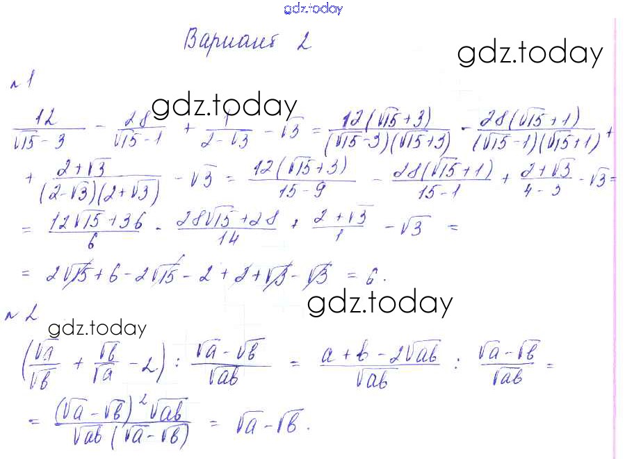 На страницах сайта gdz.today вы найдете учебный и вспомогательный материал, направленный на улучшения знаний школьной программы. ГДЗ - онлайн мир знаний СР №8. Упражнения на все действия с арифметическими корнями Решение к самостоятельным работам Вариант-2 Дидактическим материалам по Алгебре для 8 класса Зив, Гольдич Виктория плюс 2012