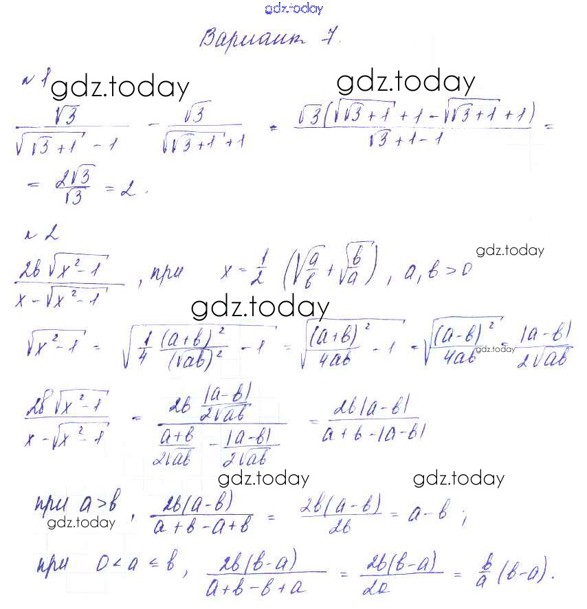 Ответы к СР №8. Упражнения на все действия с арифметическими корнями Решение к самостоятельным работам Вариант-7 Дидактическим материалам по Алгебре для 8 класса Зив, Гольдич Виктория плюс 2012