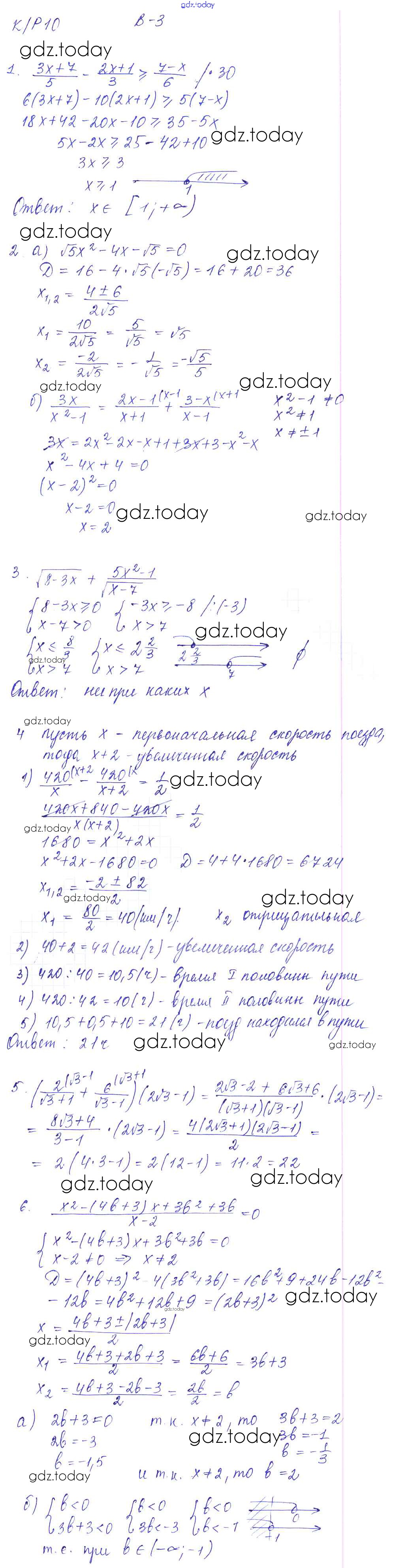 Ответы к КР-10. Итоговая Решение к контрольным работам Вариант 3 Дидактическим материалам по Алгебре для 8 класса Звавич, Дьяконова Экзамен УМК 2015