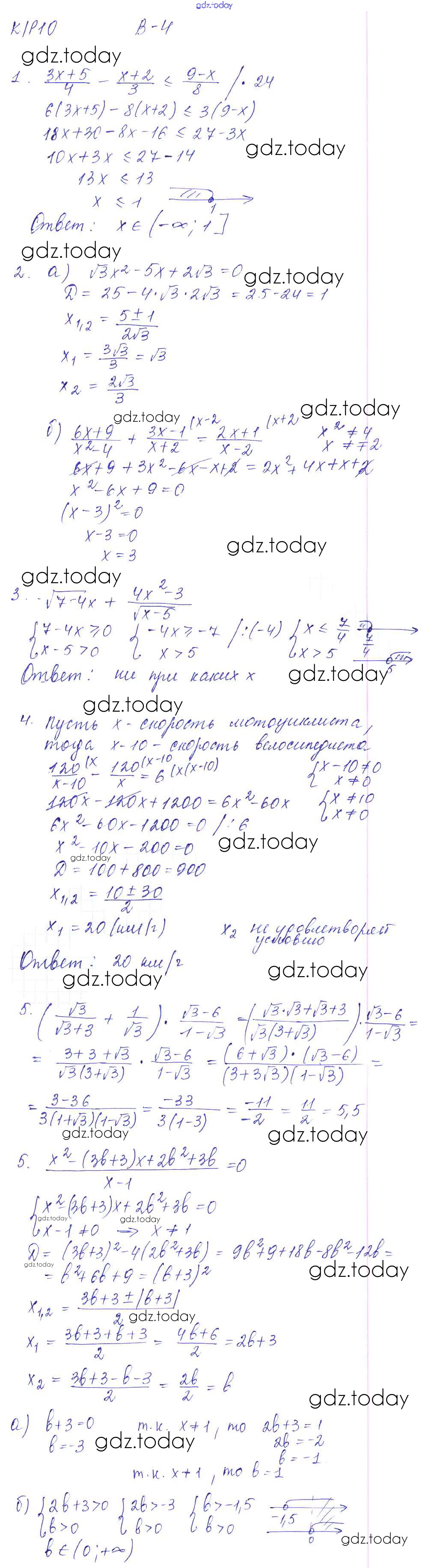 Ответы к КР-10. Итоговая Решение к контрольным работам Вариант 4 Дидактическим материалам по Алгебре для 8 класса Звавич, Дьяконова Экзамен УМК 2015
