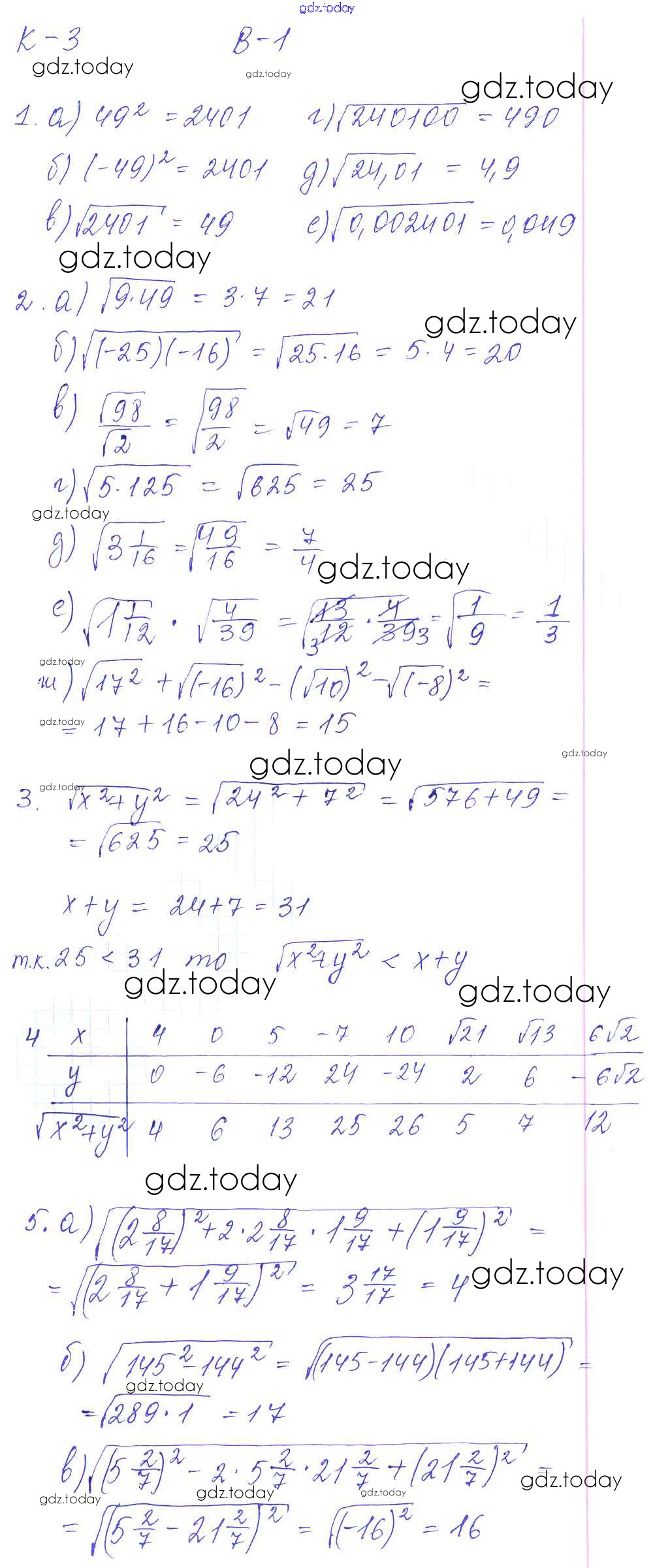 На страницах сайта gdz.today вы найдете учебный и вспомогательный материал, направленный на улучшения знаний школьной программы. ГДЗ - онлайн мир знаний КР-3. Квадратные корни Решение к контрольным работам Вариант 1 Дидактическим материалам по Алгебре для 8 класса Звавич, Дьяконова Экзамен УМК 2015
