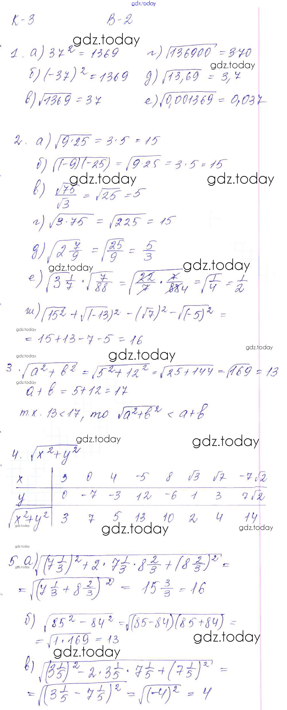 На страницах сайта gdz.today вы найдете учебный и вспомогательный материал, направленный на улучшения знаний школьной программы. ГДЗ - онлайн мир знаний КР-3. Квадратные корни Решение к контрольным работам Вариант 2 Дидактическим материалам по Алгебре для 8 класса Звавич, Дьяконова Экзамен УМК 2015