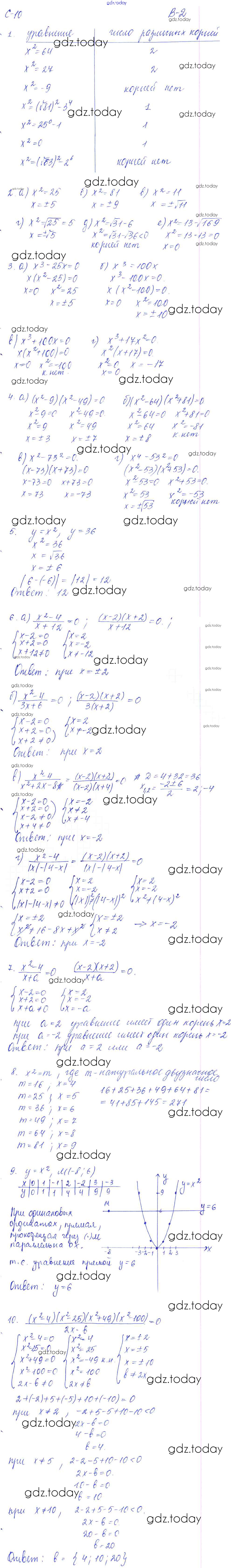 На страницах сайта gdz.today вы найдете учебный и вспомогательный материал, направленный на улучшения знаний школьной программы. ГДЗ - онлайн мир знаний СР - 10. Уравнение x2 = a Решение к самостоятельным работам. Варианты 2 Дидактическим материалам по Алгебре для 8 класса Звавич, Дьяконова Экзамен УМК 2015