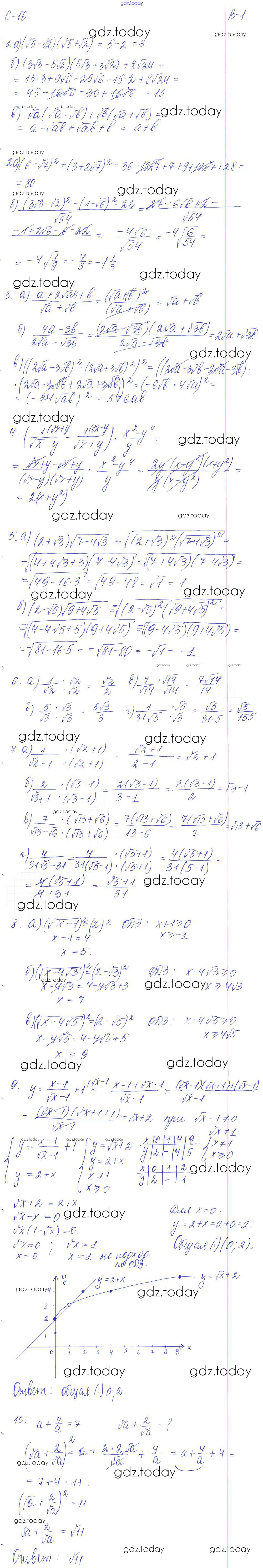 На страницах сайта gdz.today вы найдете учебный и вспомогательный материал, направленный на улучшения знаний школьной программы. ГДЗ - онлайн мир знаний СР - 16. Действия с корнями Решение к самостоятельным работам. Варианты 1 Дидактическим материалам по Алгебре для 8 класса Звавич, Дьяконова Экзамен УМК 2015
