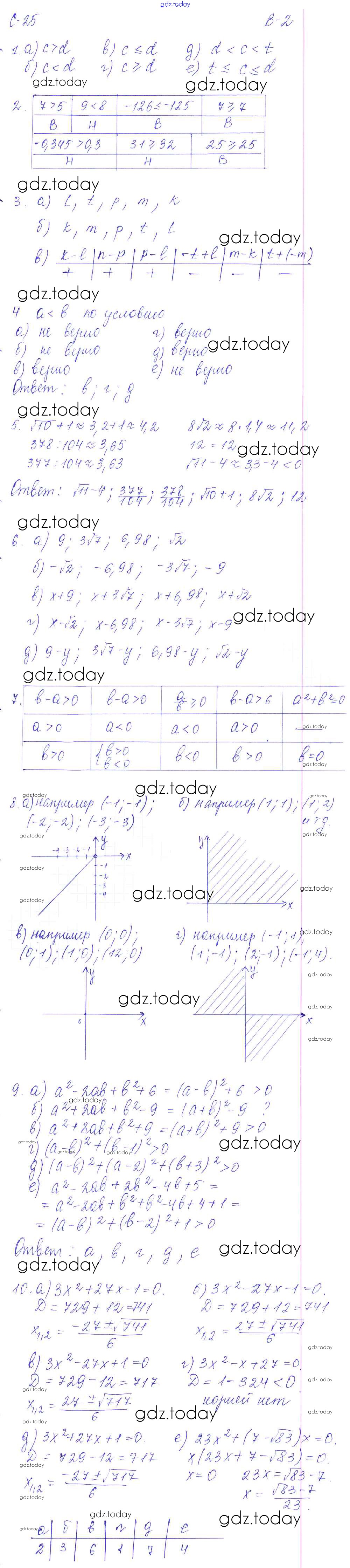 На страницах сайта gdz.today вы найдете учебный и вспомогательный материал, направленный на улучшения знаний школьной программы. ГДЗ - онлайн мир знаний СР - 25. Числовые неравенства Решение к самостоятельным работам. Варианты 2 Дидактическим материалам по Алгебре для 8 класса Звавич, Дьяконова Экзамен УМК 2015
