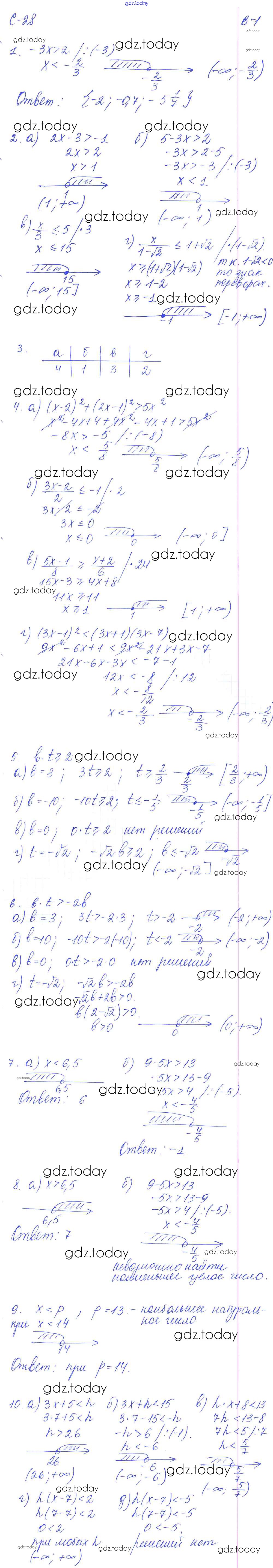 На страницах сайта gdz.today вы найдете учебный и вспомогательный материал, направленный на улучшения знаний школьной программы. ГДЗ - онлайн мир знаний СР - 28. Решение неравенств с одной переменной Решение к самостоятельным работам. Варианты 1 Дидактическим материалам по Алгебре для 8 класса Звавич, Дьяконова Экзамен УМК 2015