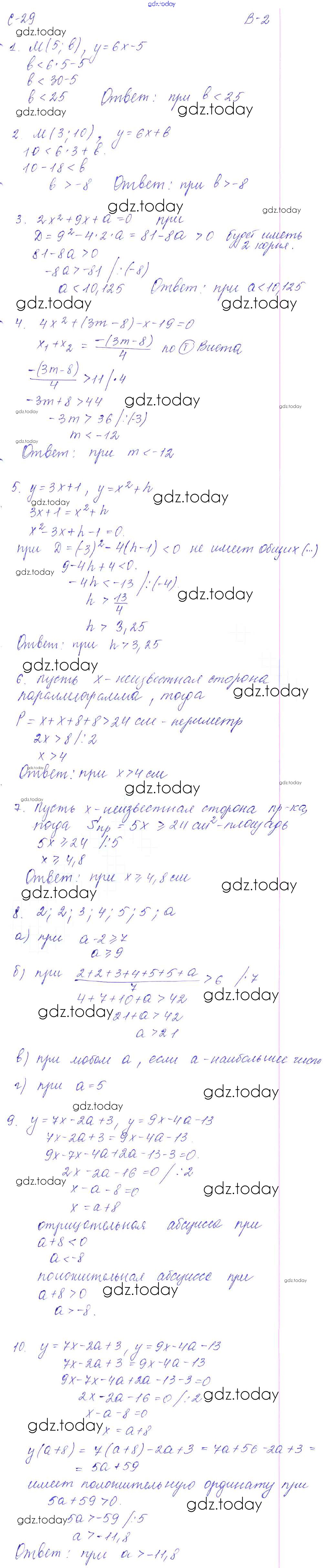 На страницах сайта gdz.today вы найдете учебный и вспомогательный материал, направленный на улучшения знаний школьной программы. ГДЗ - онлайн мир знаний СР - 29. Задания, приводящие к неравенствам с одной переменной Решение к самостоятельным работам. Варианты 2 Дидактическим материалам по Алгебре для 8 класса Звавич, Дьяконова Экзамен УМК 2015