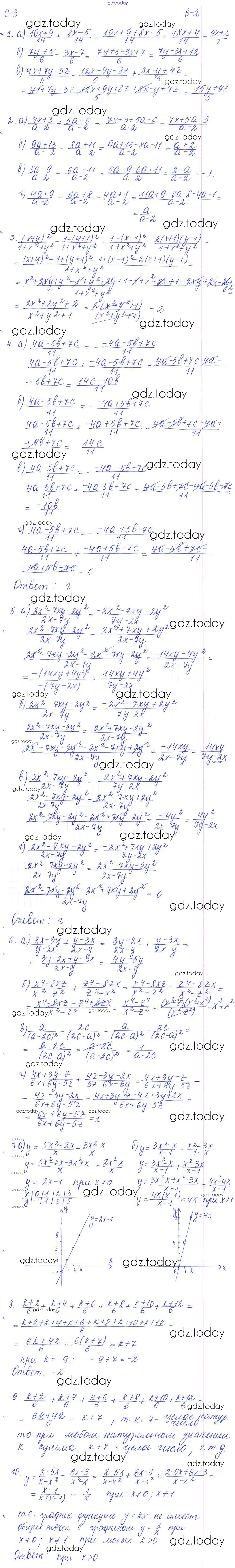 Ответы к СР - 3. Сложение и вычитание алгебраических дробей с одинаковыми знаменателями Решение к самостоятельным работам. Варианты 2 Дидактическим материалам по Алгебре для 8 класса Звавич, Дьяконова Экзамен УМК 2015