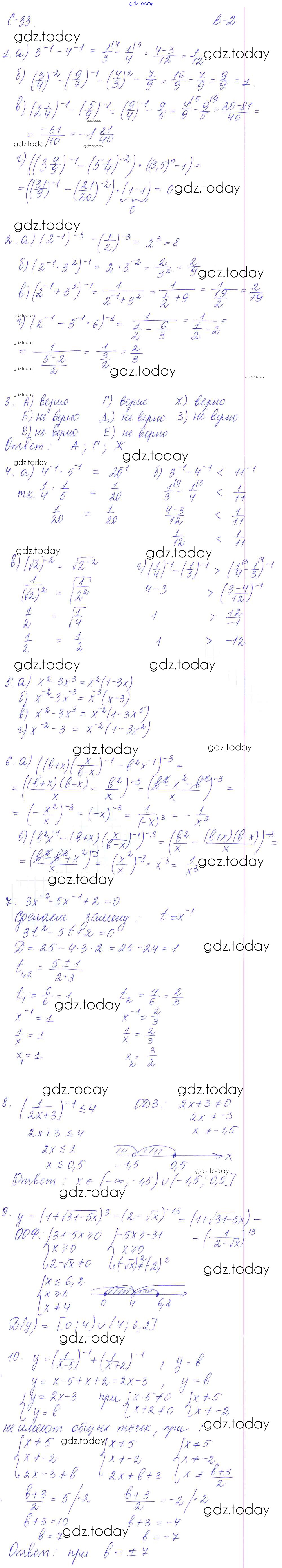 На страницах сайта gdz.today вы найдете учебный и вспомогательный материал, направленный на улучшения знаний школьной программы. ГДЗ - онлайн мир знаний СР - 33. Степень с целым показателем Решение к самостоятельным работам. Варианты 2 Дидактическим материалам по Алгебре для 8 класса Звавич, Дьяконова Экзамен УМК 2015