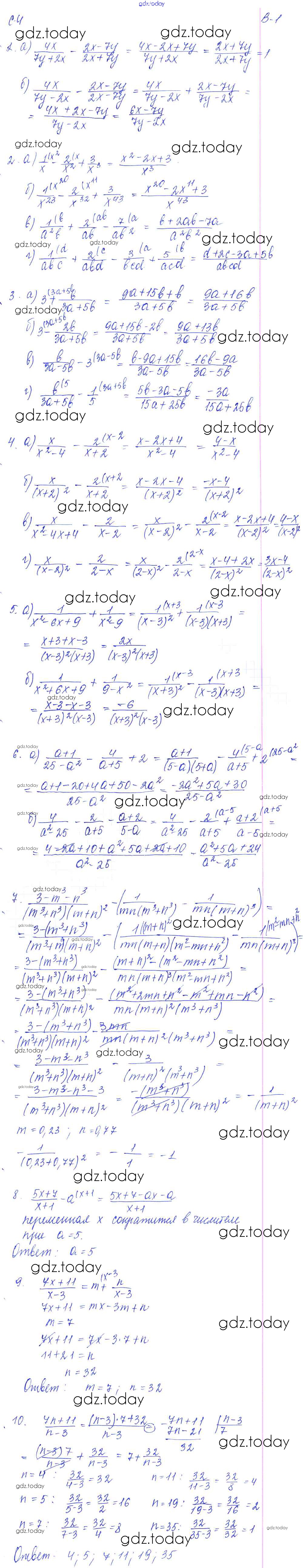 На страницах сайта gdz.today вы найдете учебный и вспомогательный материал, направленный на улучшения знаний школьной программы. ГДЗ - онлайн мир знаний СР - 4. Сложение и вычитание алгебраических дробей с разными знаменателями Решение к самостоятельным работам. Варианты 1 Дидактическим материалам по Алгебре для 8 класса Звавич, Дьяконова Экзамен УМК 2015