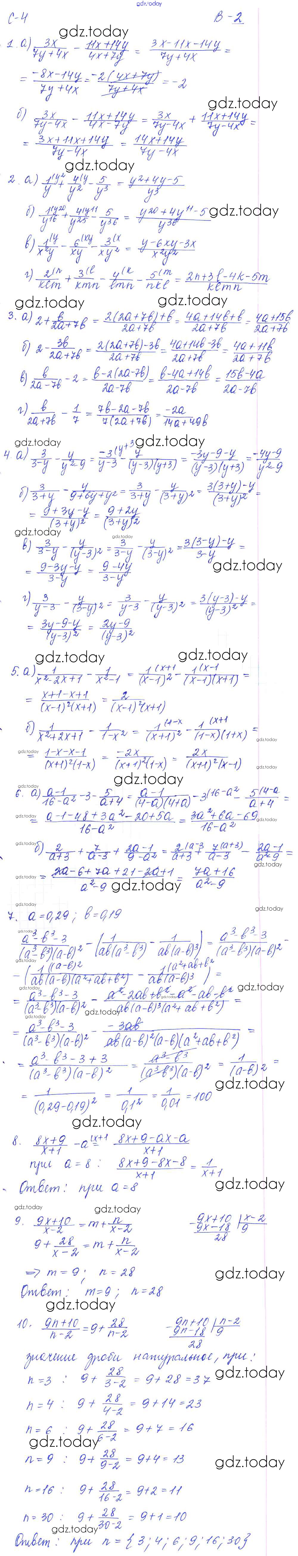 Ответы к СР - 4. Сложение и вычитание алгебраических дробей с разными знаменателями Решение к самостоятельным работам. Варианты 2 Дидактическим материалам по Алгебре для 8 класса Звавич, Дьяконова Экзамен УМК 2015