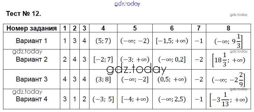 Ответы к Решение к тестам 12 Контрольно-измерительным материалам (КИМ) по Алгебре для 8 класса Глазков, Гаиашвили Экзамен 2014