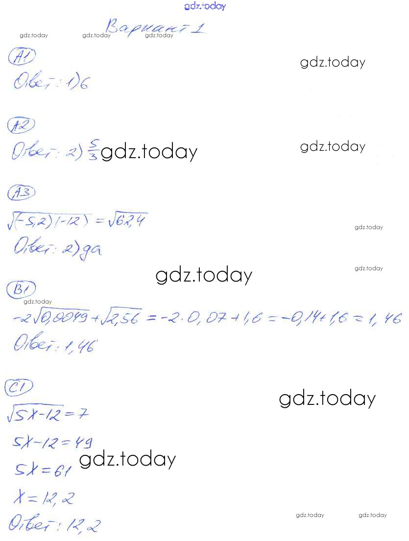 Ответы к СР-10. Варианты Решение к самостоятельным работам 1 Самостоятельным и контрольным работам по Алгебре для 8 класса Глазков, Гаиашвили Экзамен УМК 2012