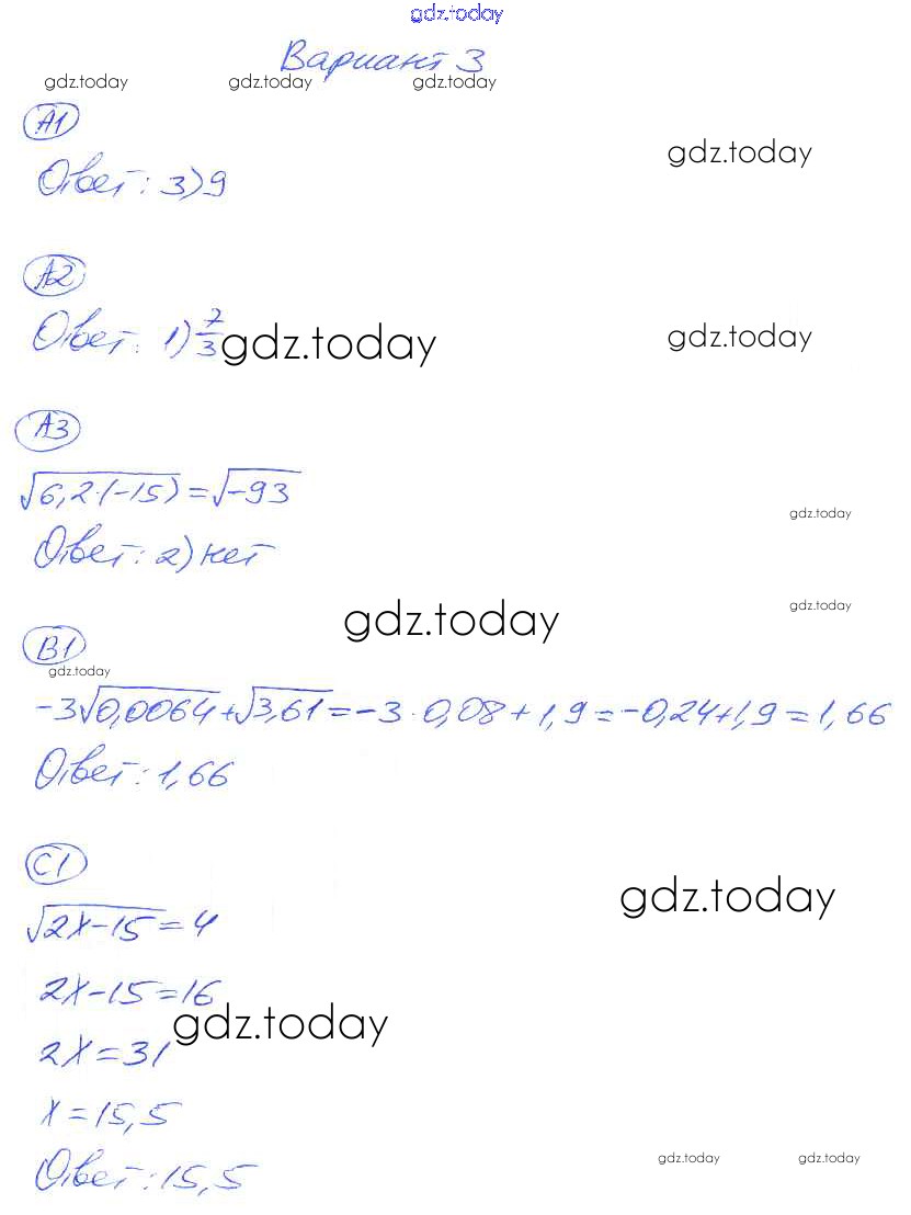 Ответы к СР-10. Варианты Решение к самостоятельным работам 3 Самостоятельным и контрольным работам по Алгебре для 8 класса Глазков, Гаиашвили Экзамен УМК 2012