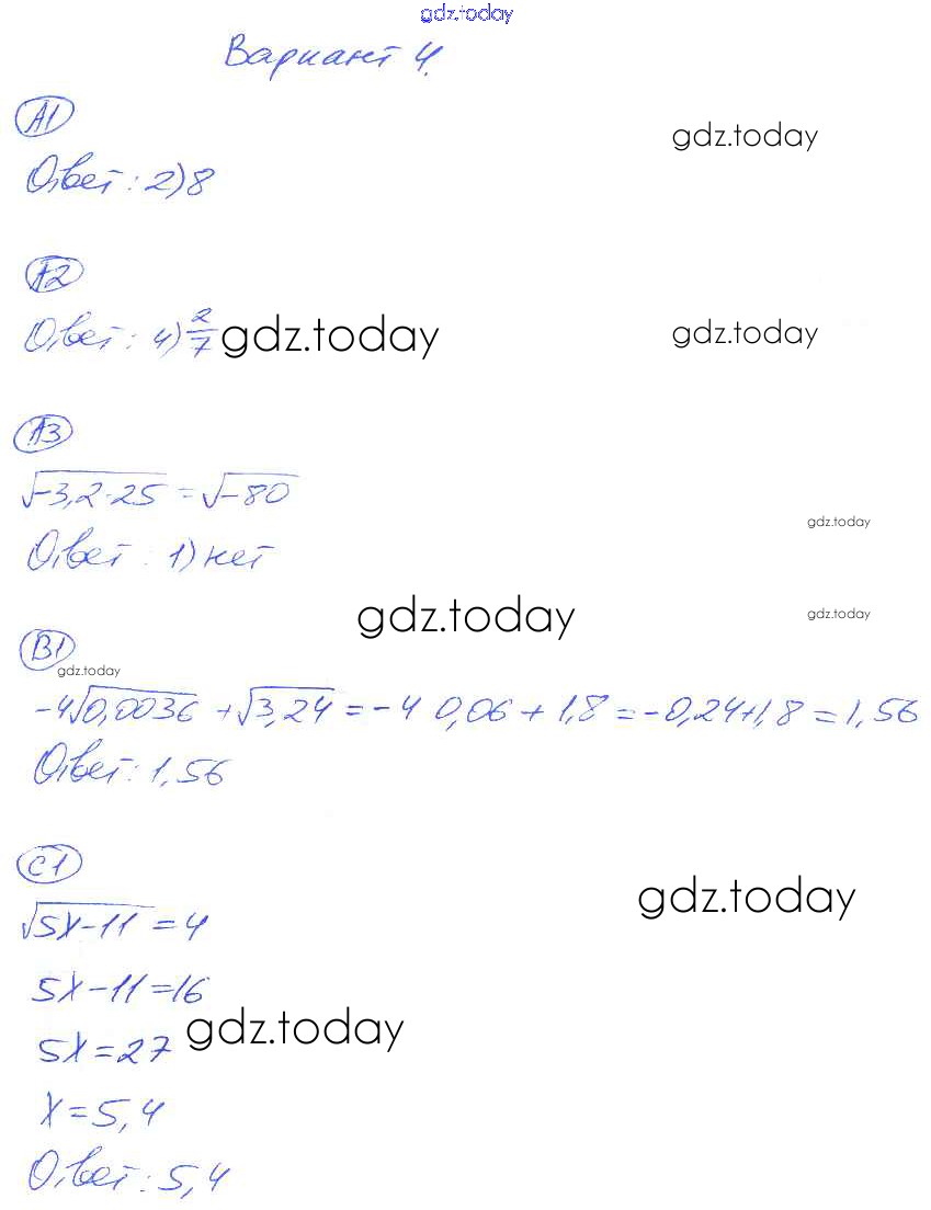Ответы к СР-10. Варианты Решение к самостоятельным работам 4 Самостоятельным и контрольным работам по Алгебре для 8 класса Глазков, Гаиашвили Экзамен УМК 2012