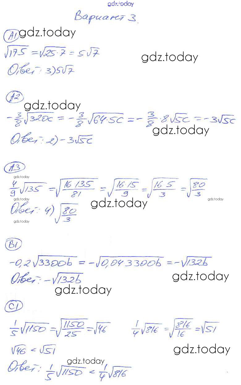 Ответы к СР-14. Варианты Решение к самостоятельным работам 3 Самостоятельным и контрольным работам по Алгебре для 8 класса Глазков, Гаиашвили Экзамен УМК 2012
