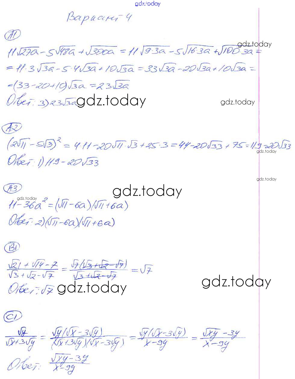 На страницах сайта gdz.today вы найдете учебный и вспомогательный материал, направленный на улучшения знаний школьной программы. ГДЗ - онлайн мир знаний СР-15. Варианты Решение к самостоятельным работам 4 Самостоятельным и контрольным работам по Алгебре для 8 класса Глазков, Гаиашвили Экзамен УМК 2012
