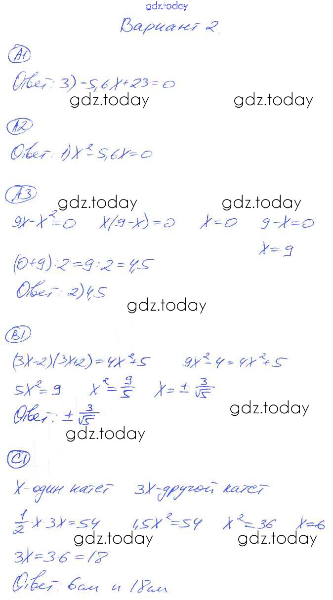 Ответы к СР-16. Варианты Решение к самостоятельным работам 2 Самостоятельным и контрольным работам по Алгебре для 8 класса Глазков, Гаиашвили Экзамен УМК 2012