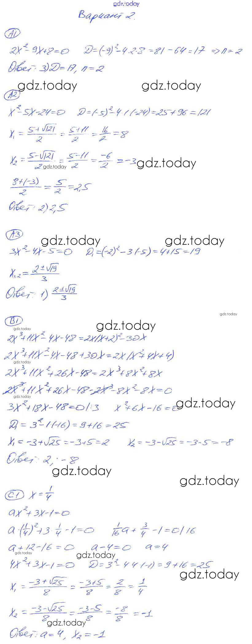 Ответы к СР-17. Варианты Решение к самостоятельным работам 2 Самостоятельным и контрольным работам по Алгебре для 8 класса Глазков, Гаиашвили Экзамен УМК 2012