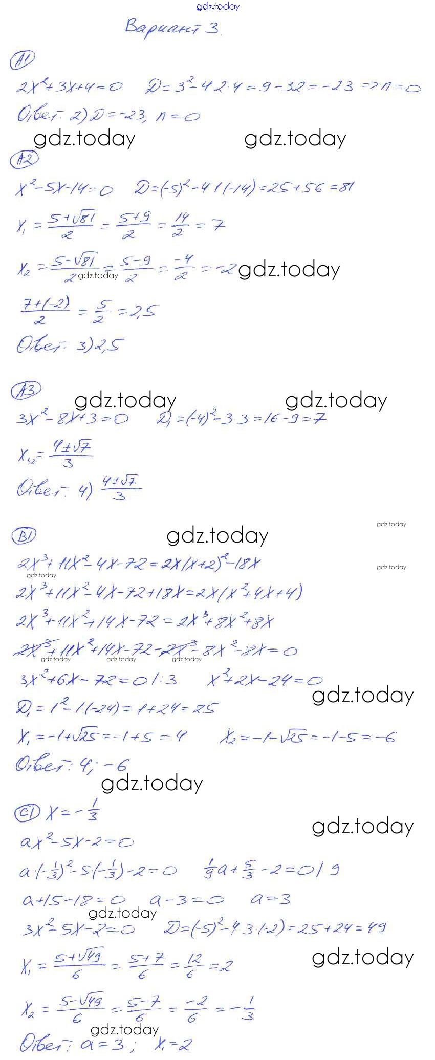 Ответы к СР-17. Варианты Решение к самостоятельным работам 3 Самостоятельным и контрольным работам по Алгебре для 8 класса Глазков, Гаиашвили Экзамен УМК 2012