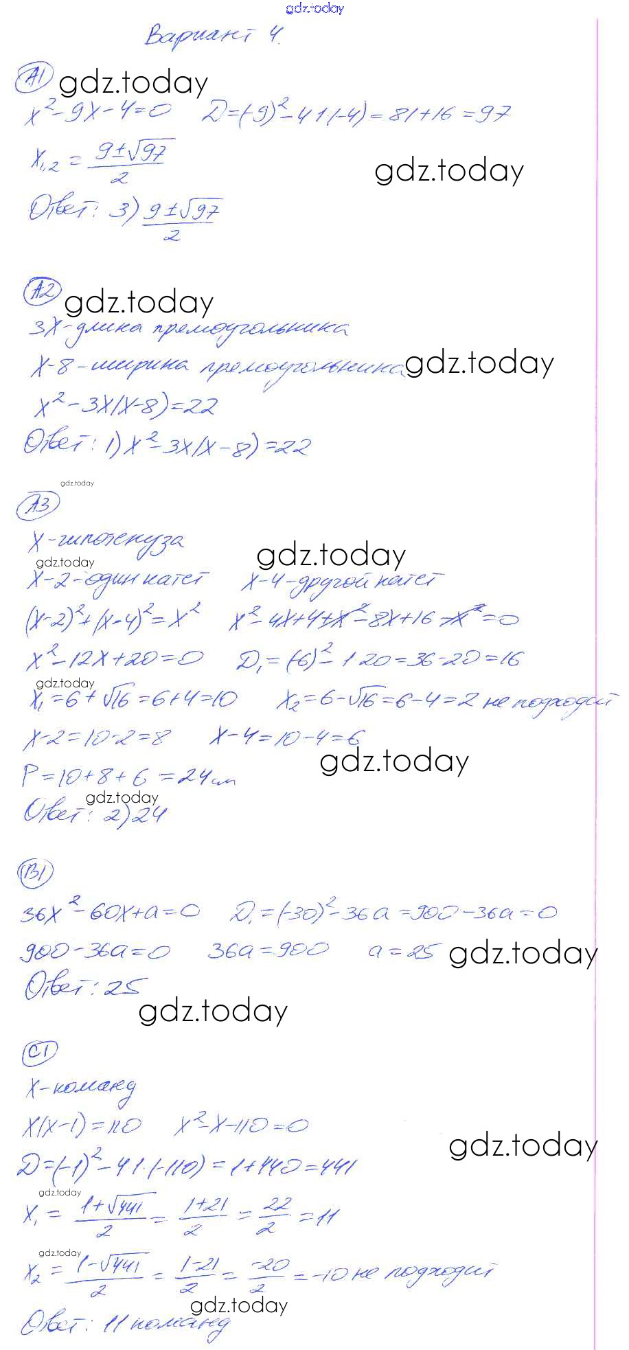 Ответы к СР-18. Варианты Решение к самостоятельным работам 4 Самостоятельным и контрольным работам по Алгебре для 8 класса Глазков, Гаиашвили Экзамен УМК 2012
