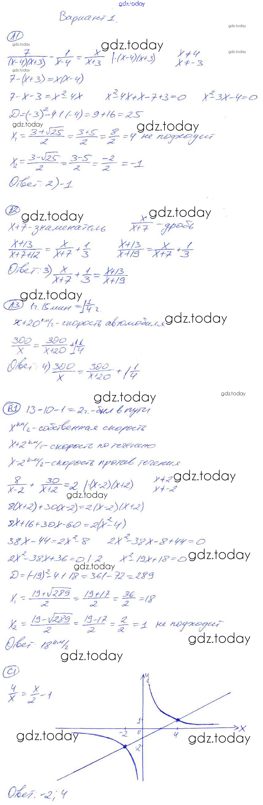 Ответы к СР-21. Варианты Решение к самостоятельным работам 1 Самостоятельным и контрольным работам по Алгебре для 8 класса Глазков, Гаиашвили Экзамен УМК 2012