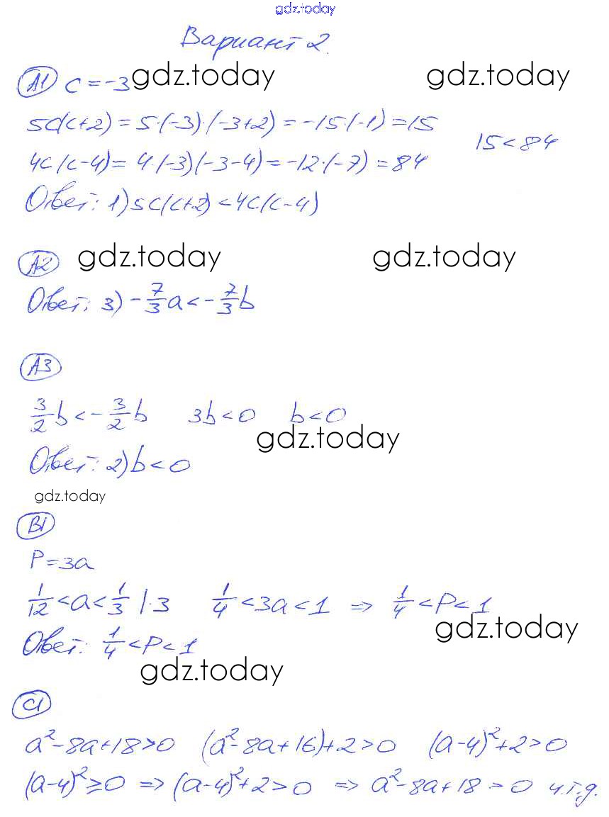 Ответы к СР-22. Варианты Решение к самостоятельным работам 2 Самостоятельным и контрольным работам по Алгебре для 8 класса Глазков, Гаиашвили Экзамен УМК 2012