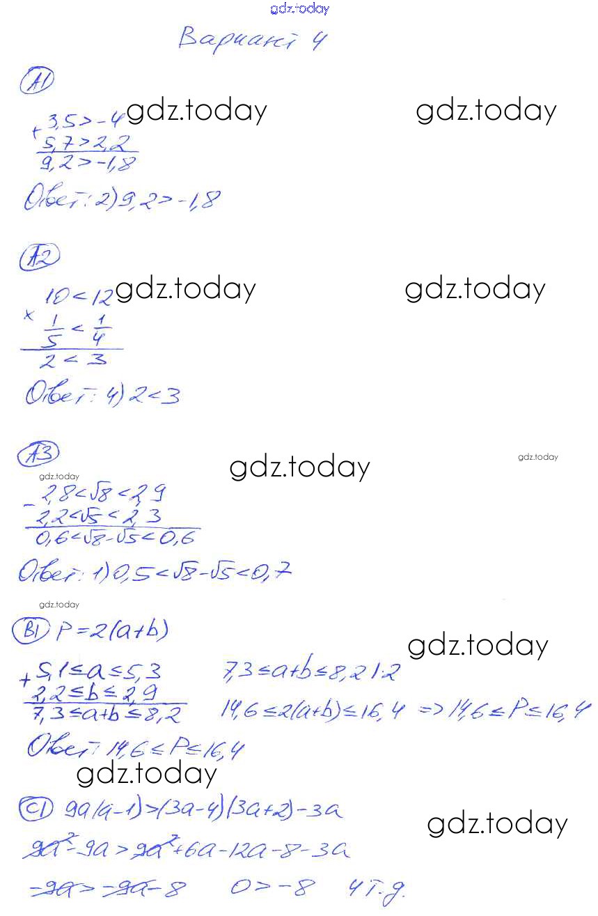 На страницах сайта gdz.today вы найдете учебный и вспомогательный материал, направленный на улучшения знаний школьной программы. ГДЗ - онлайн мир знаний СР-23. Варианты Решение к самостоятельным работам 4 Самостоятельным и контрольным работам по Алгебре для 8 класса Глазков, Гаиашвили Экзамен УМК 2012