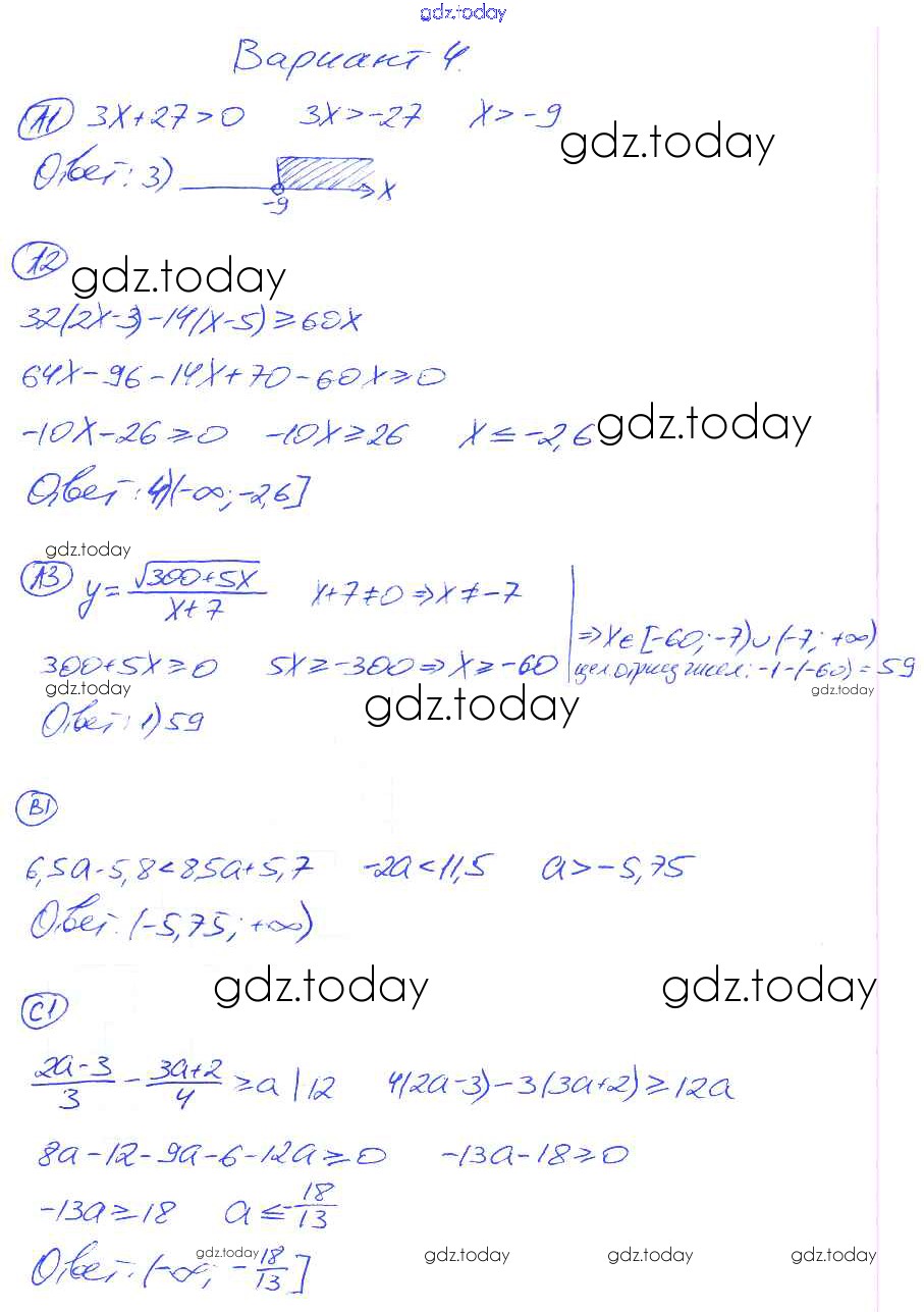 Ответы к СР-25. Варианты Решение к самостоятельным работам 4 Самостоятельным и контрольным работам по Алгебре для 8 класса Глазков, Гаиашвили Экзамен УМК 2012