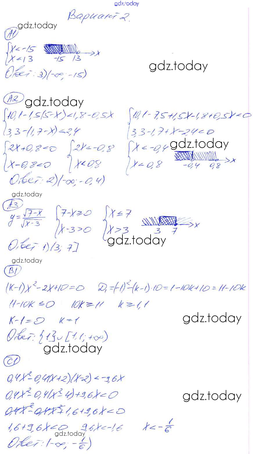 Ответы к СР-26. Варианты Решение к самостоятельным работам 2 Самостоятельным и контрольным работам по Алгебре для 8 класса Глазков, Гаиашвили Экзамен УМК 2012