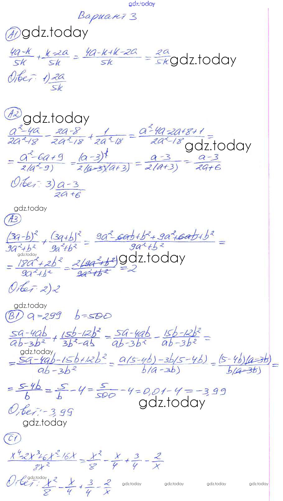 Ответы к СР-3. Варианты Решение к самостоятельным работам 3 Самостоятельным и контрольным работам по Алгебре для 8 класса Глазков, Гаиашвили Экзамен УМК 2012