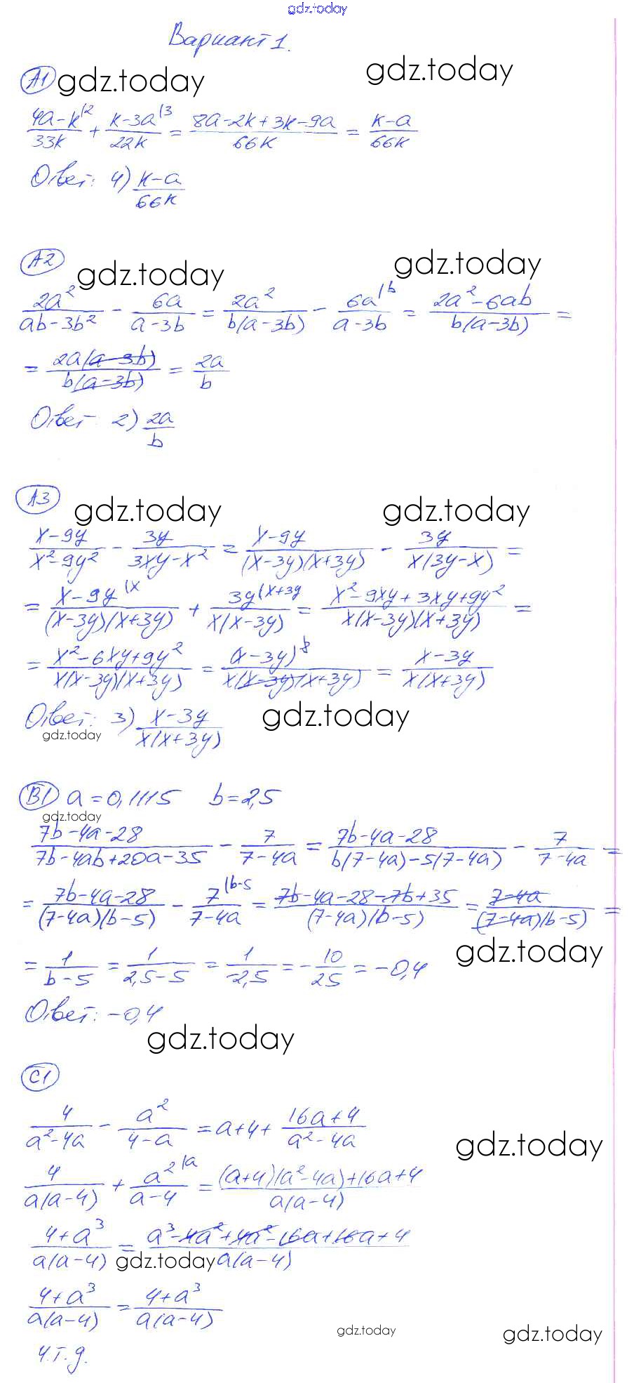 На страницах сайта gdz.today вы найдете учебный и вспомогательный материал, направленный на улучшения знаний школьной программы. ГДЗ - онлайн мир знаний СР-4. Варианты Решение к самостоятельным работам 1 Самостоятельным и контрольным работам по Алгебре для 8 класса Глазков, Гаиашвили Экзамен УМК 2012