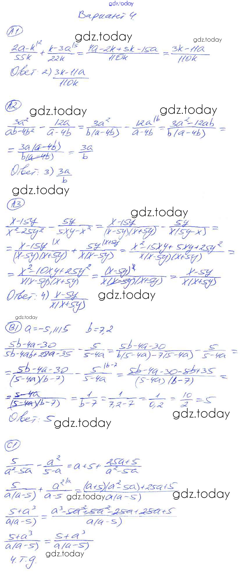 На страницах сайта gdz.today вы найдете учебный и вспомогательный материал, направленный на улучшения знаний школьной программы. ГДЗ - онлайн мир знаний СР-4. Варианты Решение к самостоятельным работам 4 Самостоятельным и контрольным работам по Алгебре для 8 класса Глазков, Гаиашвили Экзамен УМК 2012