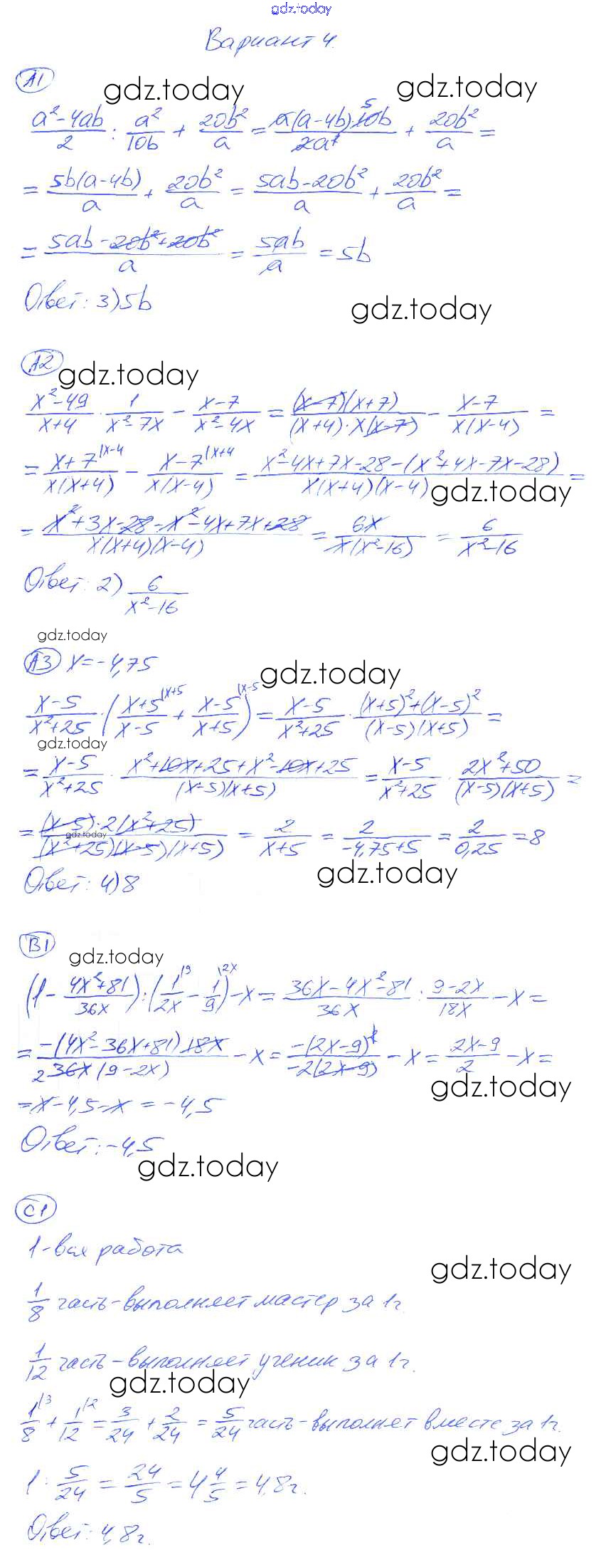На страницах сайта gdz.today вы найдете учебный и вспомогательный материал, направленный на улучшения знаний школьной программы. ГДЗ - онлайн мир знаний СР-7. Варианты Решение к самостоятельным работам 4 Самостоятельным и контрольным работам по Алгебре для 8 класса Глазков, Гаиашвили Экзамен УМК 2012