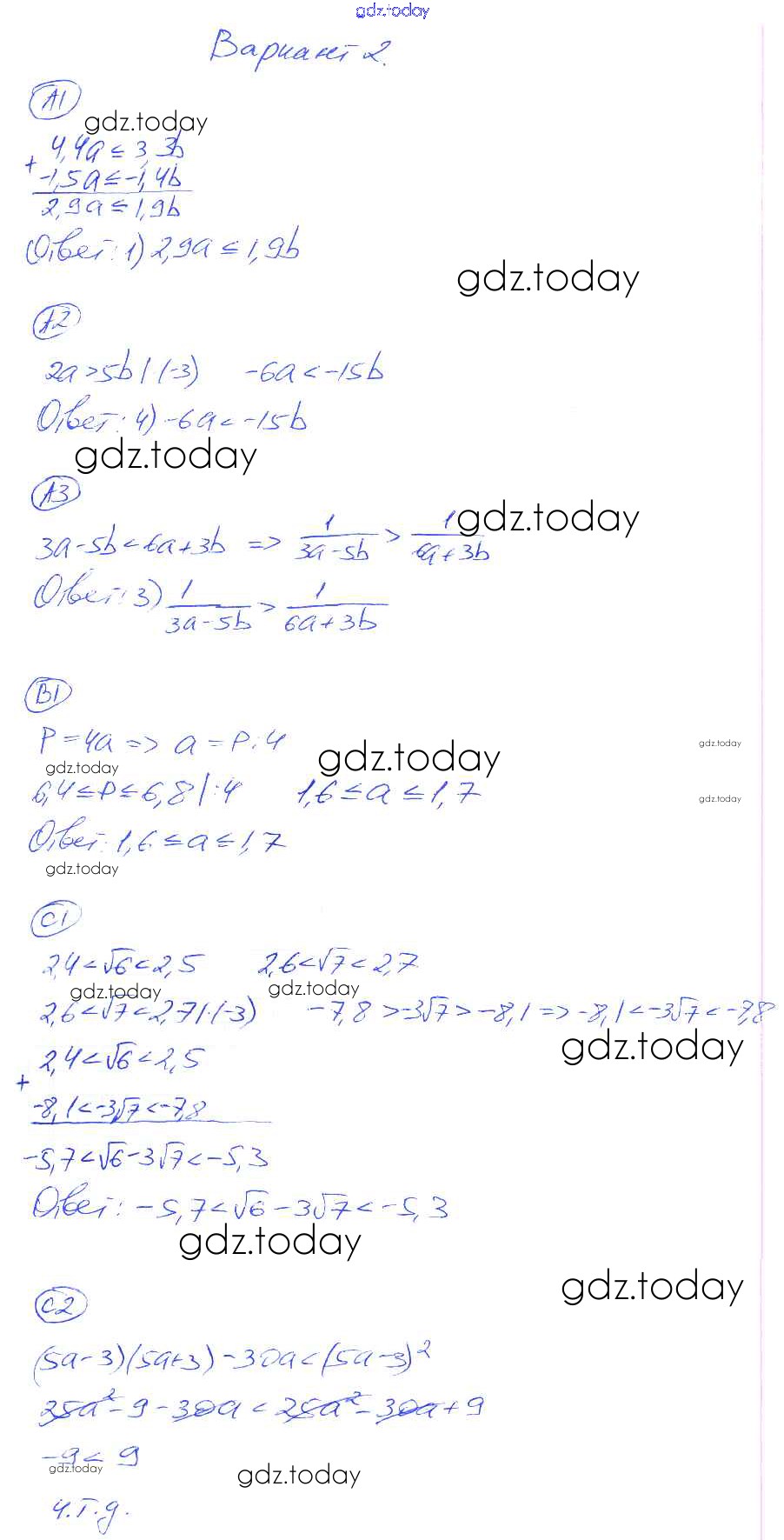 Ответы к КР-7. Варианты Решение к контрольным работам 2 Самостоятельным и контрольным работам по Алгебре для 8 класса Глазков, Гаиашвили Экзамен УМК 2012