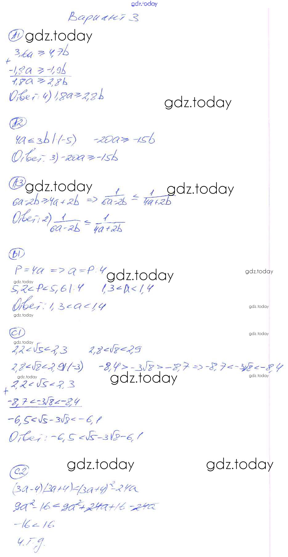 Ответы к КР-7. Варианты Решение к контрольным работам 3 Самостоятельным и контрольным работам по Алгебре для 8 класса Глазков, Гаиашвили Экзамен УМК 2012