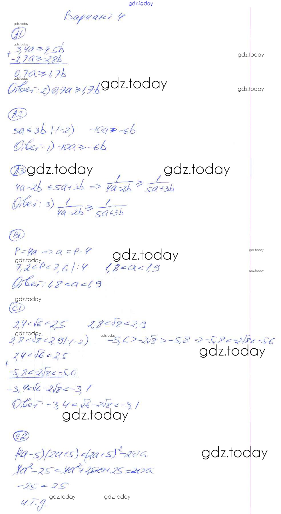 Ответы к КР-7. Варианты Решение к контрольным работам 4 Самостоятельным и контрольным работам по Алгебре для 8 класса Глазков, Гаиашвили Экзамен УМК 2012