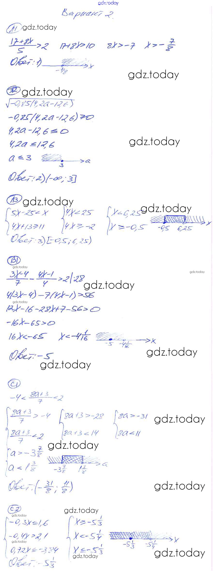 Ответы к КР-8. Варианты Решение к контрольным работам 2 Самостоятельным и контрольным работам по Алгебре для 8 класса Глазков, Гаиашвили Экзамен УМК 2012