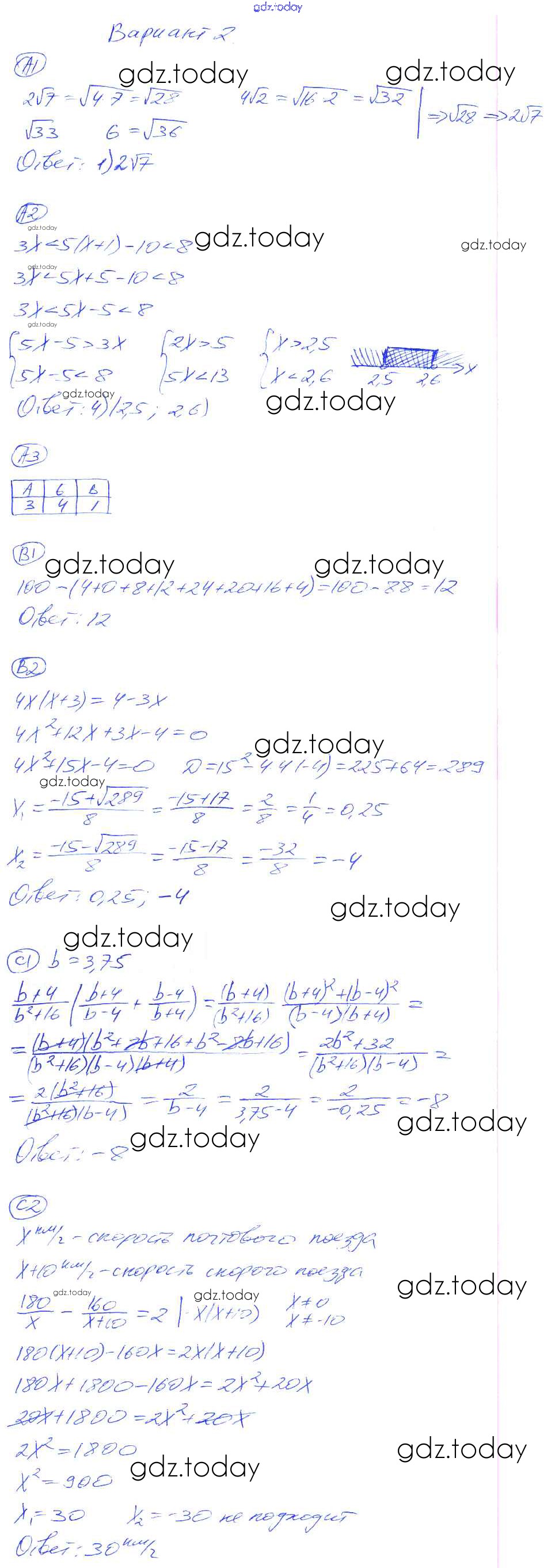 Ответы к КР-9. Варианты Решение к контрольным работам 2 Самостоятельным и контрольным работам по Алгебре для 8 класса Глазков, Гаиашвили Экзамен УМК 2012