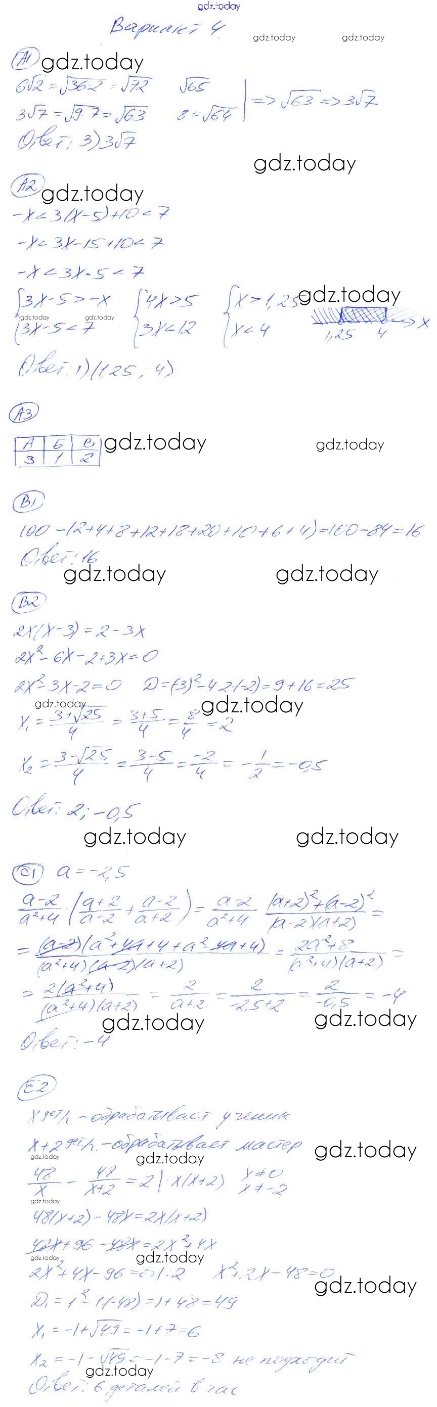 На страницах сайта gdz.today вы найдете учебный и вспомогательный материал, направленный на улучшения знаний школьной программы. ГДЗ - онлайн мир знаний КР-9. Варианты Решение к контрольным работам 4 Самостоятельным и контрольным работам по Алгебре для 8 класса Глазков, Гаиашвили Экзамен УМК 2012