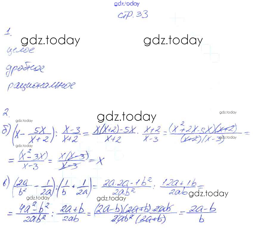 На страницах сайта gdz.today вы найдете учебный и вспомогательный материал, направленный на улучшения знаний школьной программы. ГДЗ - онлайн мир знаний Решение к части 1 33 Рабочей тетради по Алгебре для 8 класса Ключникова, Комиссарова Экзамен УМК 2013