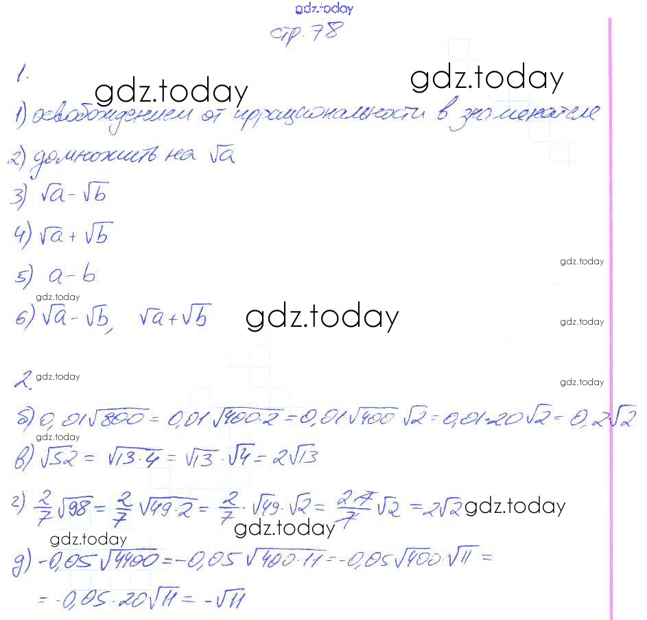 На страницах сайта gdz.today вы найдете учебный и вспомогательный материал, направленный на улучшения знаний школьной программы. ГДЗ - онлайн мир знаний Решение к части 1 78 Рабочей тетради по Алгебре для 8 класса Ключникова, Комиссарова Экзамен УМК 2013